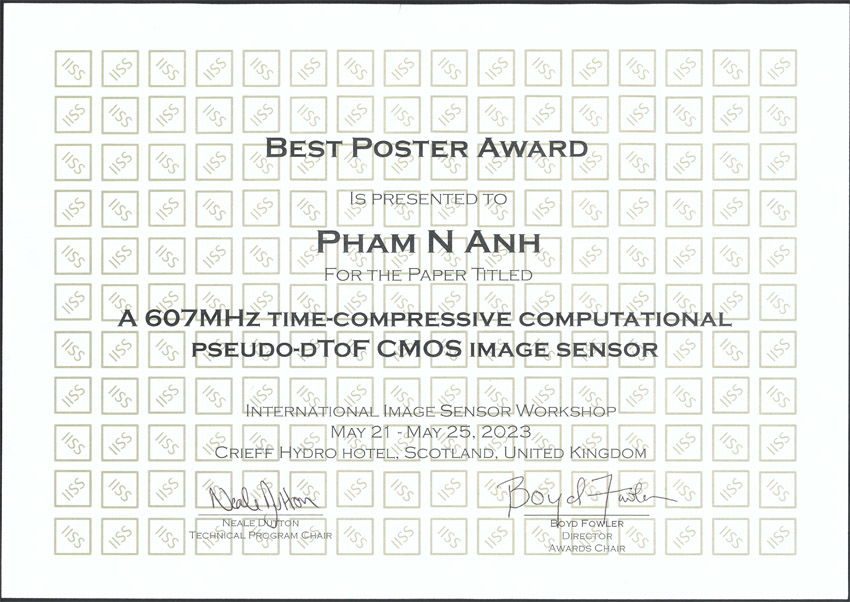 Pham N Anhさん(工学専攻 電気電子工学コース/香川研究室)が2023 International Image Sensor Workshop (IISW2023)にてBest Poster Award (1st Place)を受賞